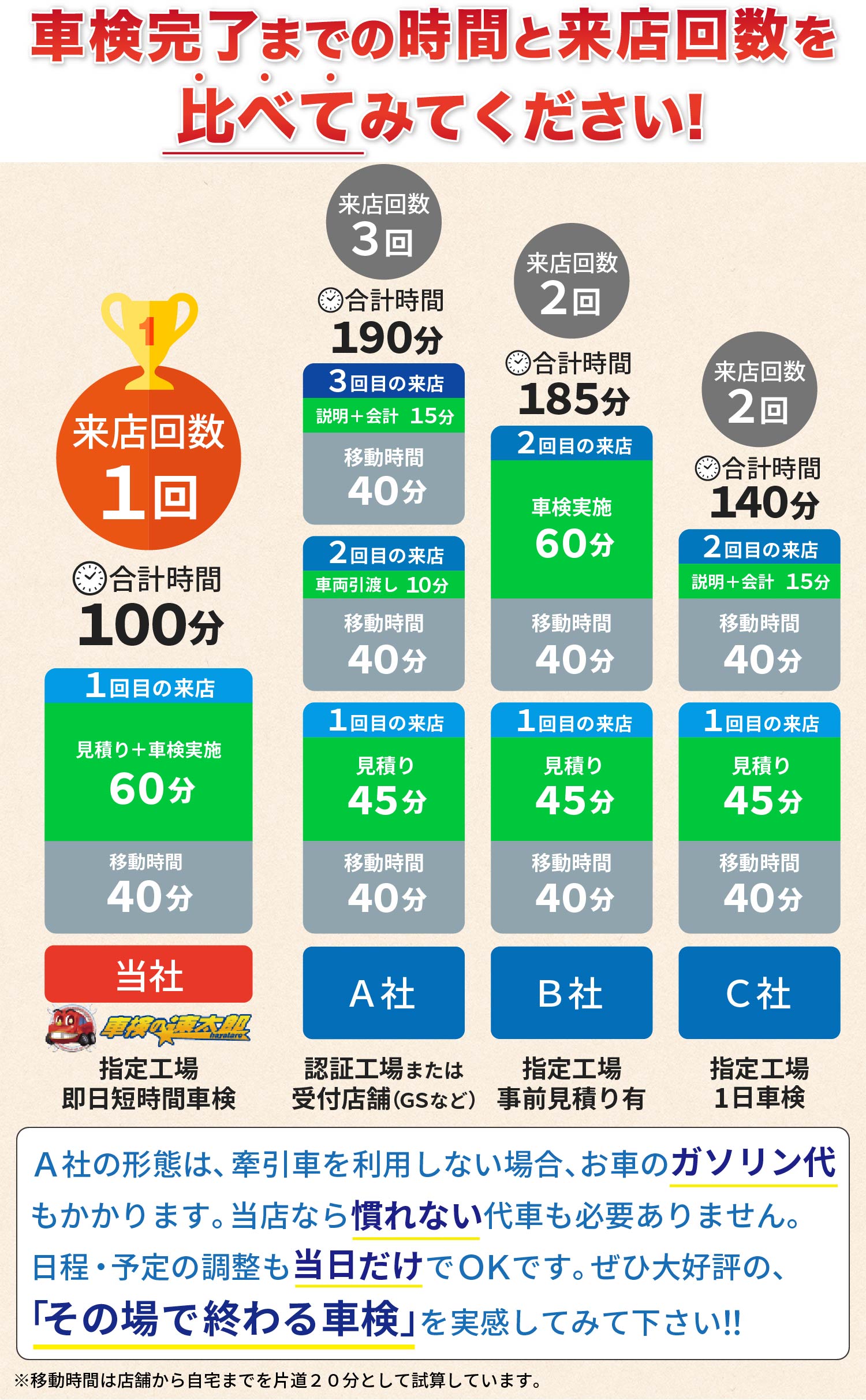 長年積み重ねてきた経験やノウハウによって、車検は以前のように何日も