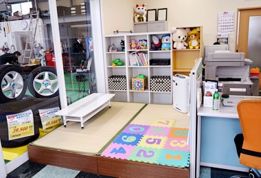 作業ピットが休憩室の両隣りにあり、休憩室からスタッフさんが作業されている様子がよく見渡せることも安心できる点